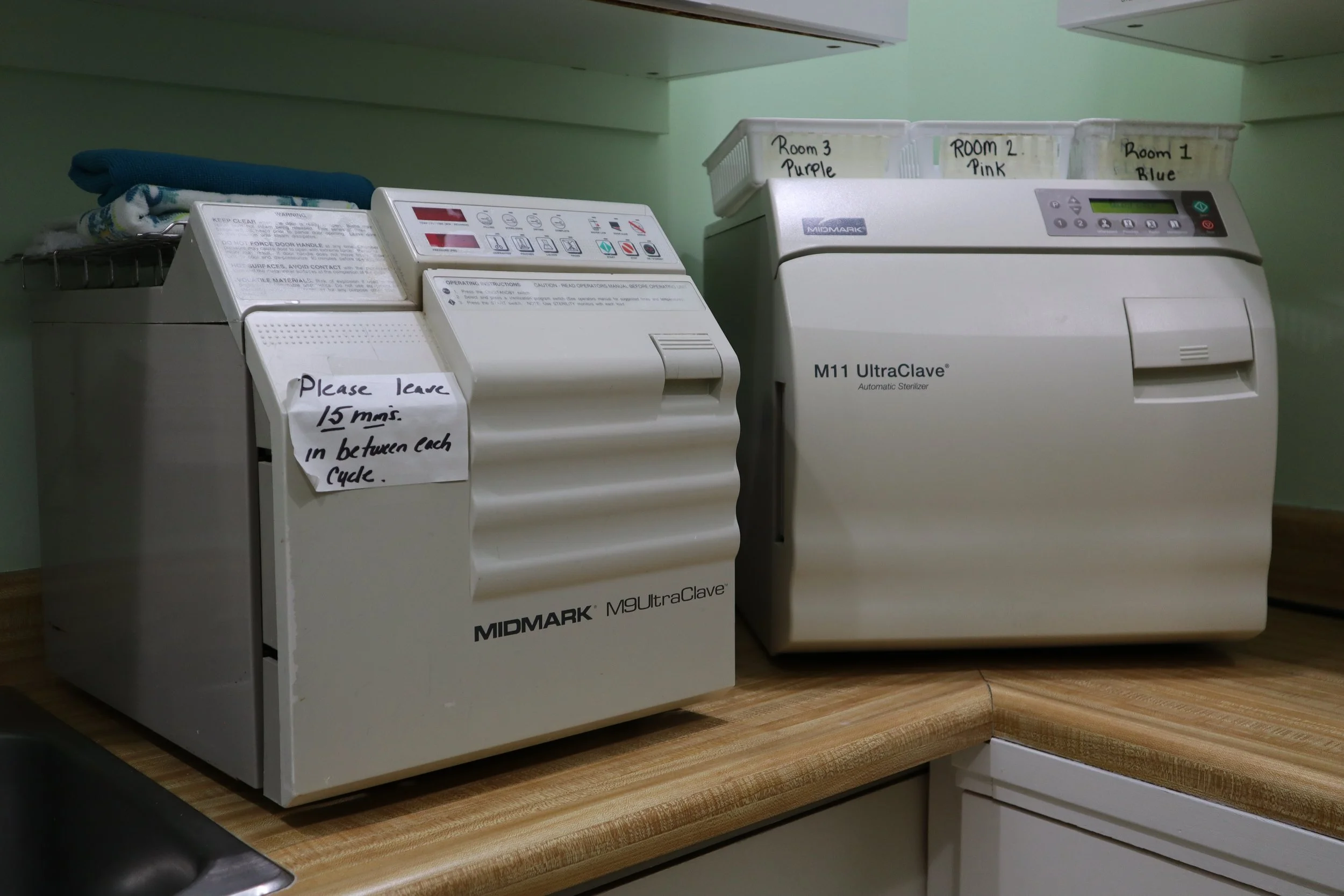 The last step would be to run those pouches through our UltraClave’s. The purpose of an UltraClave is to use steam under pressure to kill harmful bacteria, viruses, fungi, and spores on items that are placed inside a pressure vessel. The items are heated to an appropriate temperature and come out sterilized.